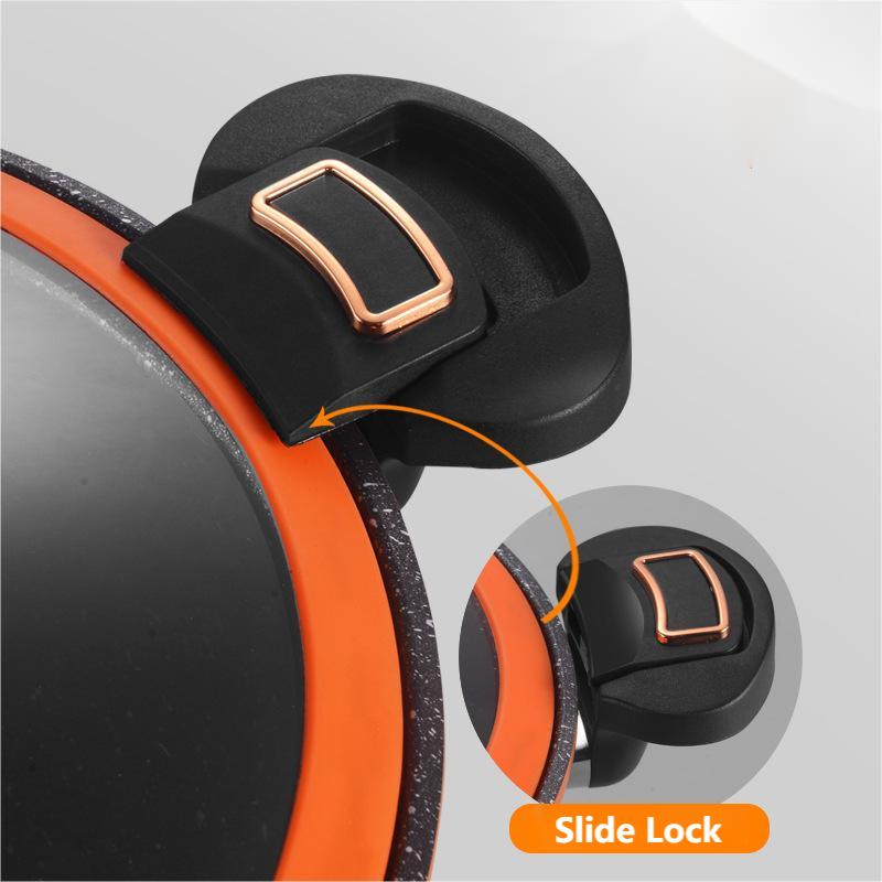 LIUKULUKITUSRAKENNE - Innovatiivinen liuku-lukitusmekanismi takaa turvallisen tiivisteen, joka sÀilyttÀÀ maut ja ravintoaineet ruoanlaiton aikana. Nauti mielenrauhasta, kun tiedÀt, ettÀ ateriasi valmistuvat tÀydellisesti.