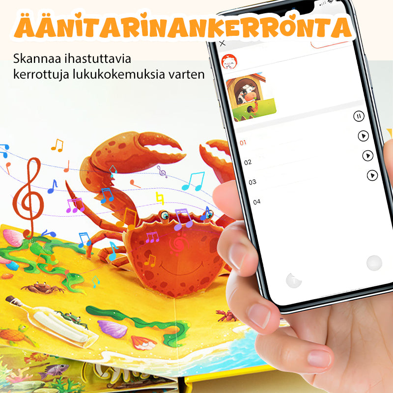 ÄÄNISEURANTA: Tee lukemisesta entistäkin rikkaampaa skannaamalla koodi ja avaa täydellinen äänitarina. Tämä interaktiivinen ominaisuus tekee tarinankertomisesta mukaansatempaavampaa ja viihdyttävämpää, samalla luoden lämpimät muistot kirjoista.