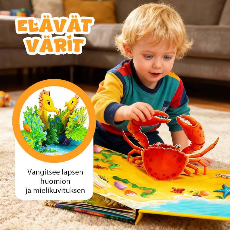 ELÄVIÄ KUVITUKSIA: Pop-up -kirjassa käytetään kirkasta ja elävää painatusta, joka herättää jokaisen olennon eloon. Lapset rakastavat vilkkaita värejä ja teräviä yksityiskohtia, mikä tekee lukemisesta todella mukaansatempaavan visuaalisen kokemuksen.
